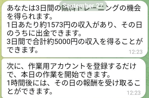 こちらは、テレグラムが絡んでくることもある副業で投資関係の怪しい内容になっている恐れがあります。