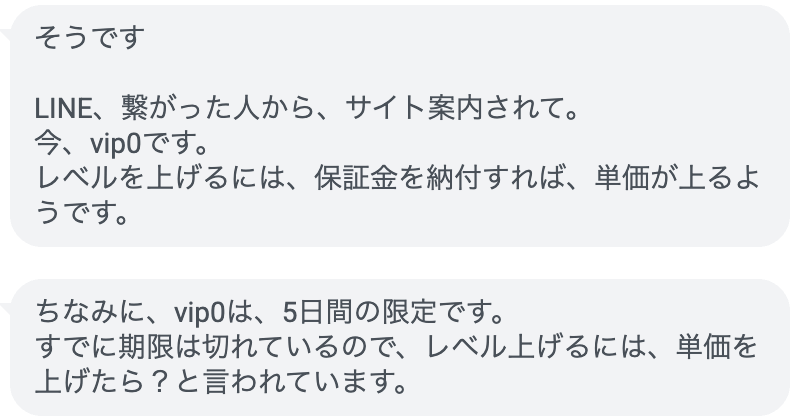 そこからは保証金が発生するようになり、VIPレベルがパートナーになった場合、2000万円のものも保証金が必要なので恐ろしい限りです。。