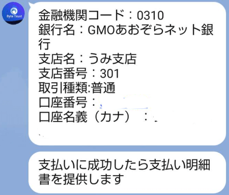 ByteTrustは知らない個人口座宛の振り込みが必要