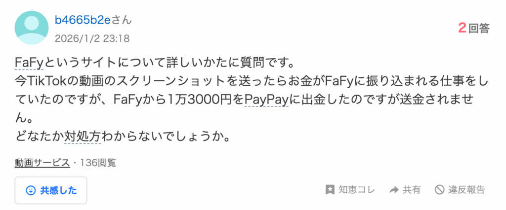 Fafyに関する情報が知恵袋にも掲載されていました。