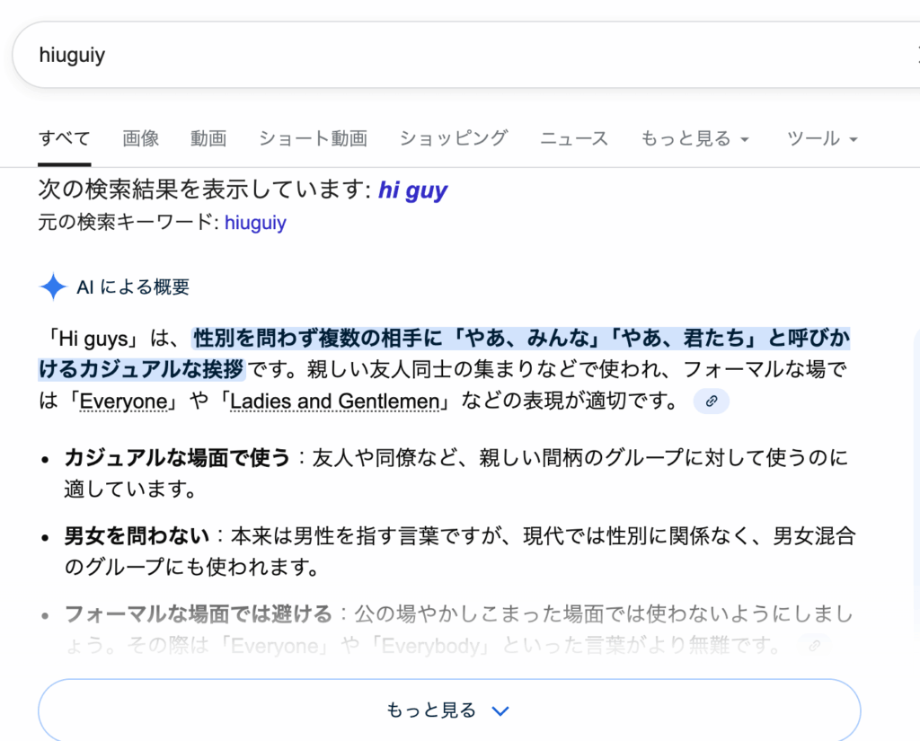 AIによる回答だけで「Hi guys」といった挨拶に関する内容だけでした。