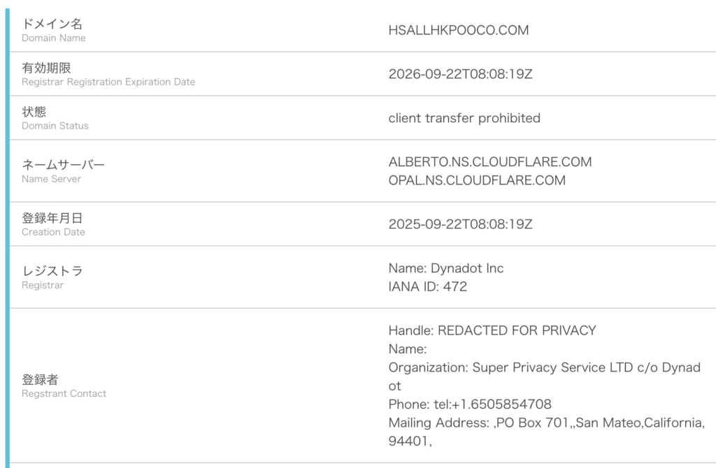 ドメインhsallhkpooco.comの調査結果