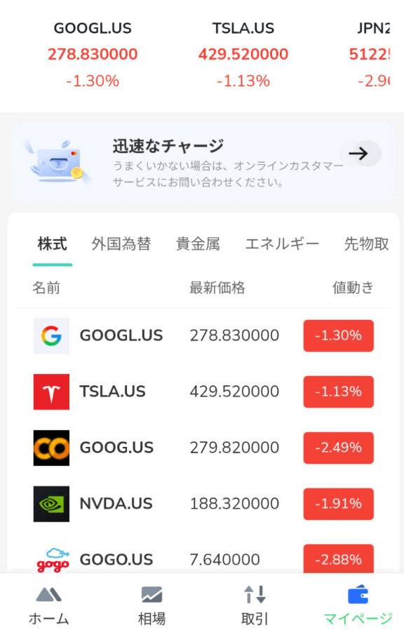 このような形で架空の株式や為替などの取引が行えるサイトになっています。
