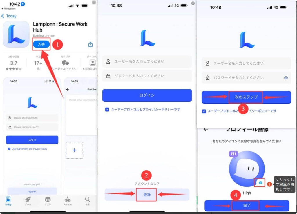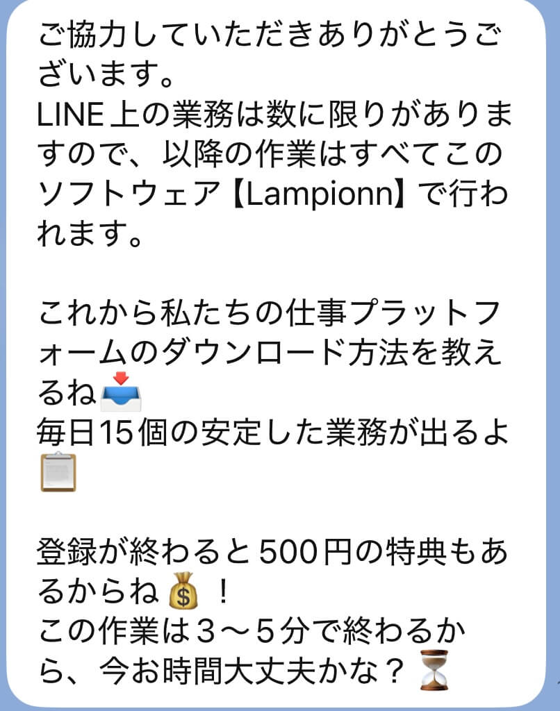 仕事を続けるにはLINEでは数に限りがあるということでLampionnアプリを登録するように言われます。
