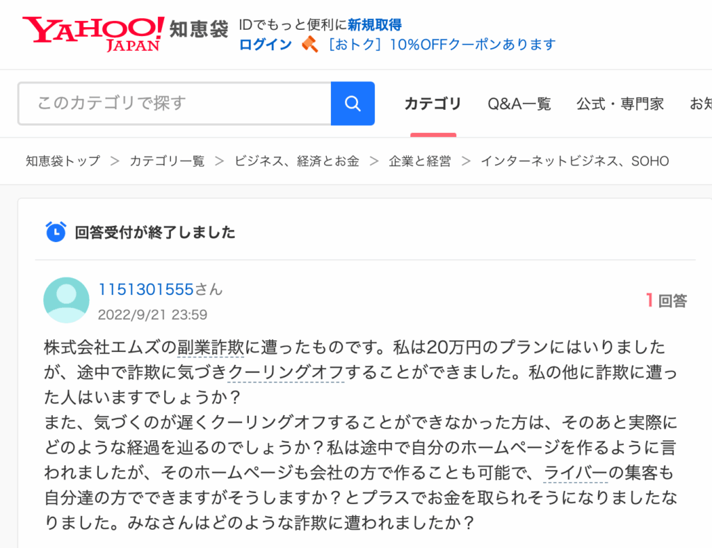 スマート副業にはYahoo!知恵袋にも質問がありました。