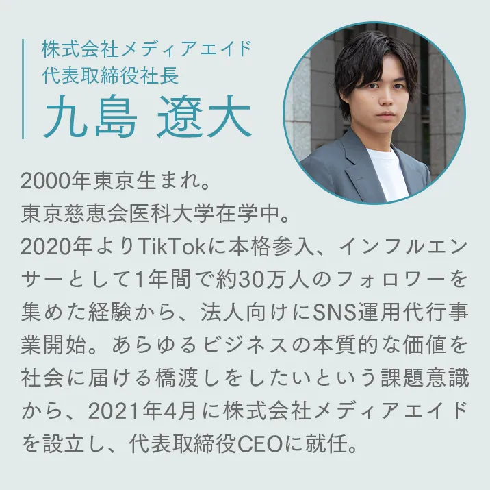 また、代表を務める九島さんは、自身もSNS総フォロワー60万人を超える現役のインフルエンサー。