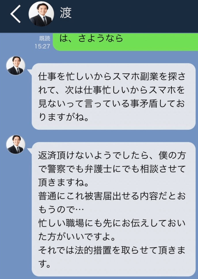 返済ができないなら警察や弁護士に相談するといった内容で、被害届や法的措置を取ることも書かれています。