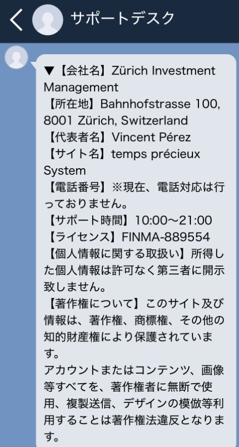 さらに、別の情報もあり、スイスの会社と謳っているようですが、大手の会社を装っている可能性がかなり高いと考えられます。