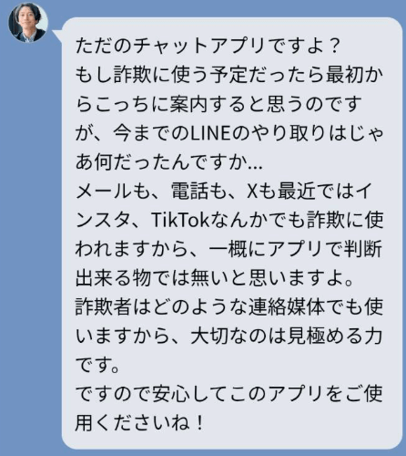 これまでは、LINEでやり取りしていたにも関わらず、急に専用アプリを誘導してきた例があります。