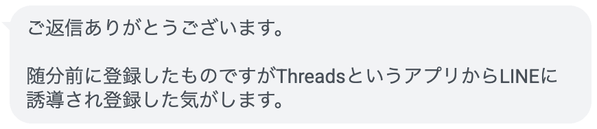 Threadsに限らず、SNSではこのような事例が多く確認できていてXやインスタといったものからも知らない人から急に連絡が届くこともあります。