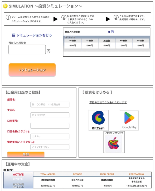 以前取り上げた案件と内容がほとんど一緒でネット上で投資を持ちかけられて騙される情報が届いています。