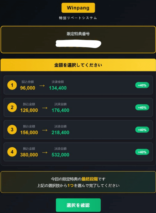 これは、先にお金を振り込んで、40%の報酬がプラスして支払われるというものです。